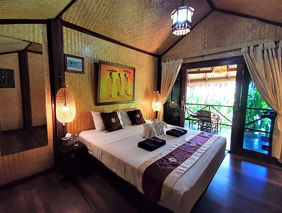 The traditional Thai-style bamboo bungalow comes with satellite TV, air conditioning, safety deposit box, a mini-bar and a private balcony with garden or pool views. Please note that some bungalows cannot accommodate an extra bed.